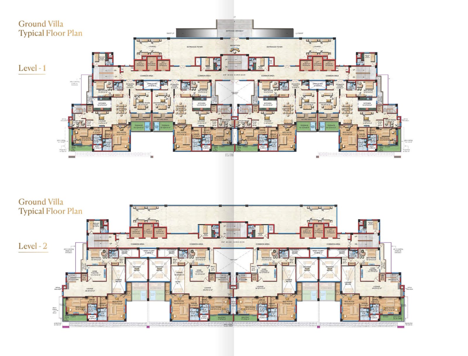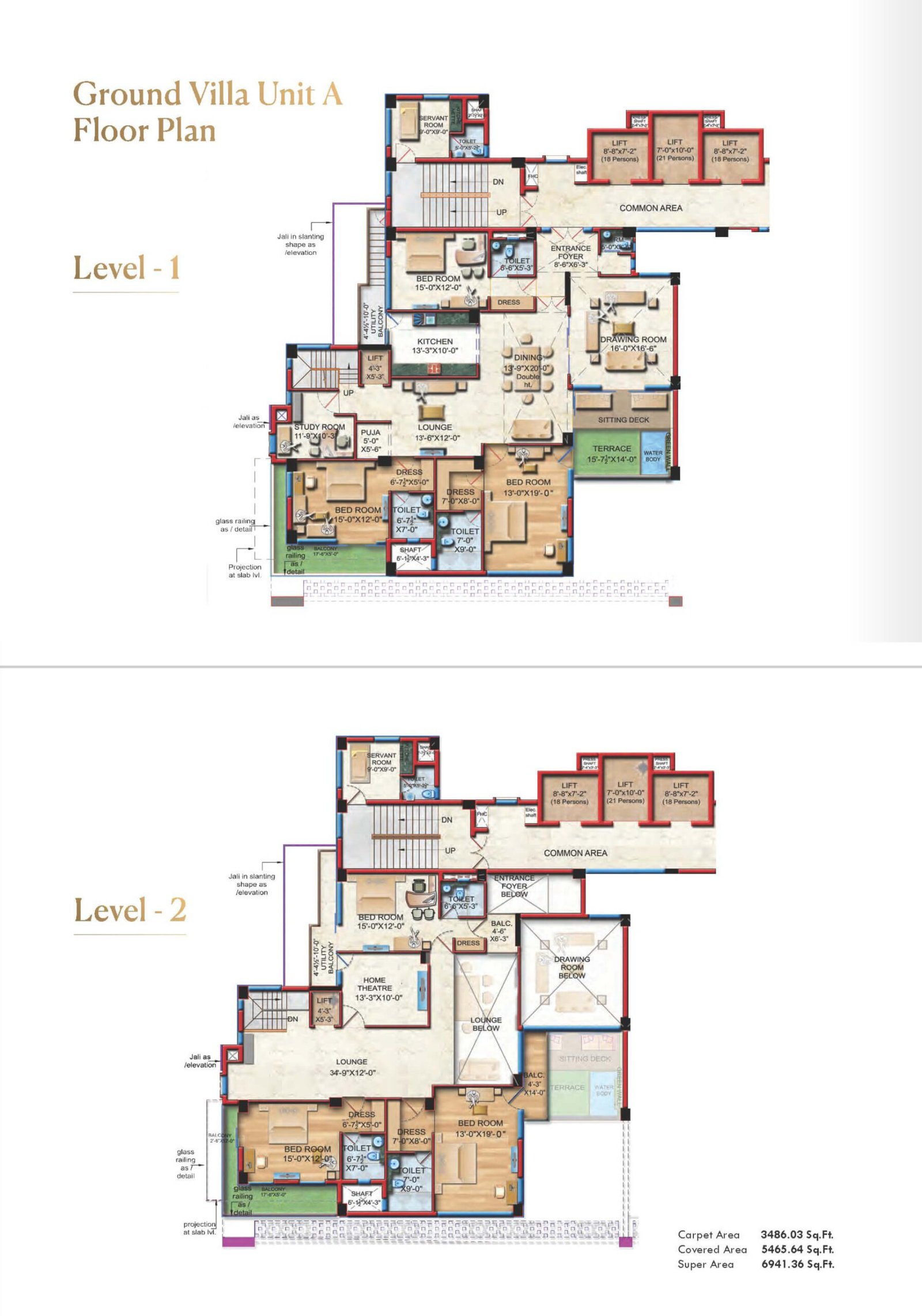 Ground Villa Type-A – 6 BHK + Servant + Terrace | 3486.03 | 5465.64 | 6941.36 | ₹ 5,65,90,016 | ₹ 1,66,593 | ₹ 6,94,136 |