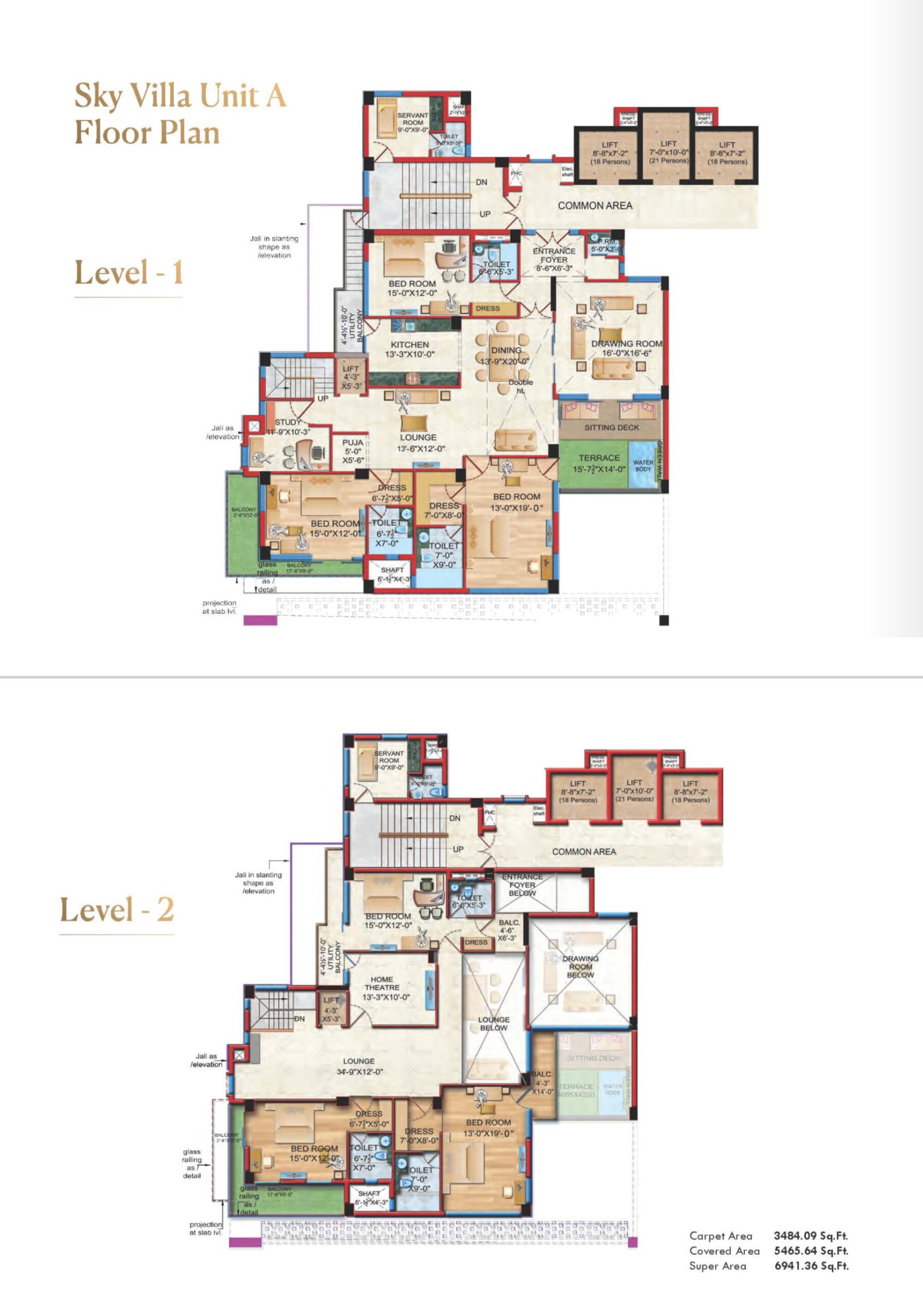 Sky Villa Type-A – 6 BHK + Servant + Terrace | 3484.09 | 5465.64 | 6941.36 | ₹ 5,65,90,016 | ₹ 1,66,593 | ₹ 6,94,136 |