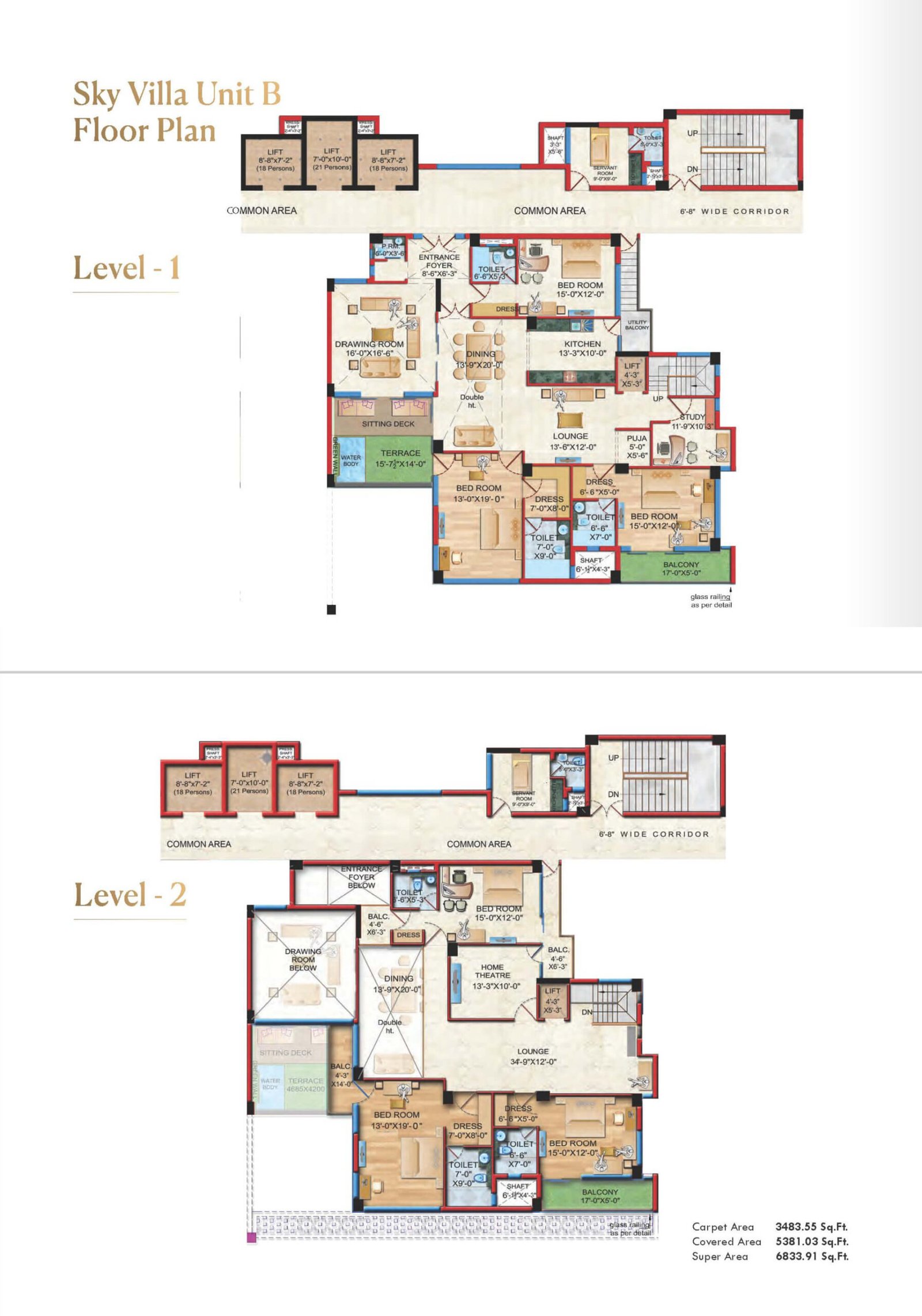 Sky Villa Type-B – 6 BHK + Servant + Terrace | 3483.55 | 5381.03 | 6833.91 | ₹ 5,57,19,671 | ₹ 1,64,014 | ₹ 6,83,391 |